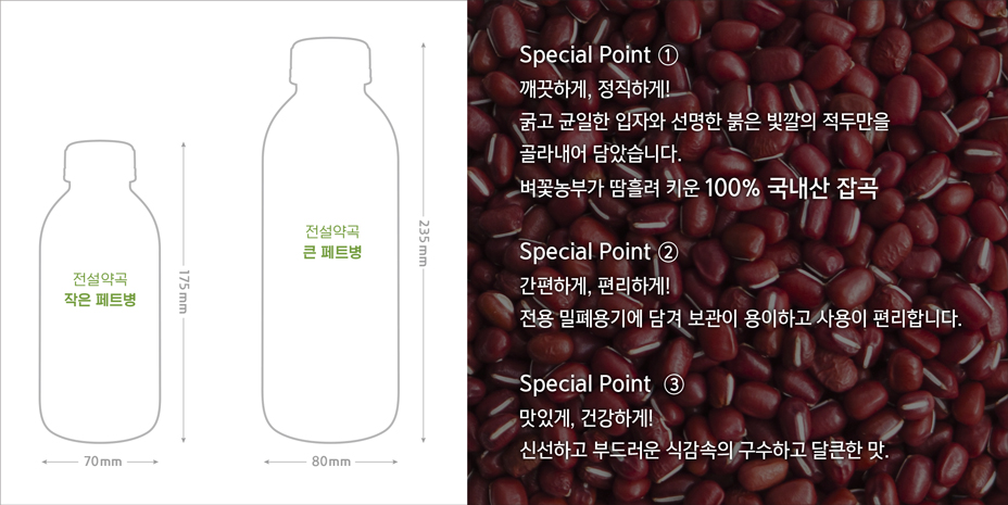 전설약곡, 신선하게 보관하기! 15도 이하로 냉장보관 해주세요 잡곡의 신선도를 유지하기 위해서는 실온보관이 아닌 냉장보관을 추천합니다. 또한 고온, 습기, 직사광선도 피해주세요. 특히 습기는 쌀의 최대 적입니다. 잡곡을 소분하여 밀폐용기에 보관해주세요 잡곡이 공기를 만나게 되면 수분을 빼앗깁니다. 페트병이나 밀폐용기를 사용해 보관해주시고 공기가 들어가지 않도록 한번 더 포장해 주시면 좋습니다. 쌀통을 이용할 땐 깨끗이 닦아주세요 만약 쌀통에 기존에 들어있던 잡곡이나 쌀가루가 남아 있으면 곰팡이나 벌레가 생길 수 있으니 사용전에 꼭 통을 깨끗이 씻어주시기 바랍니다. |