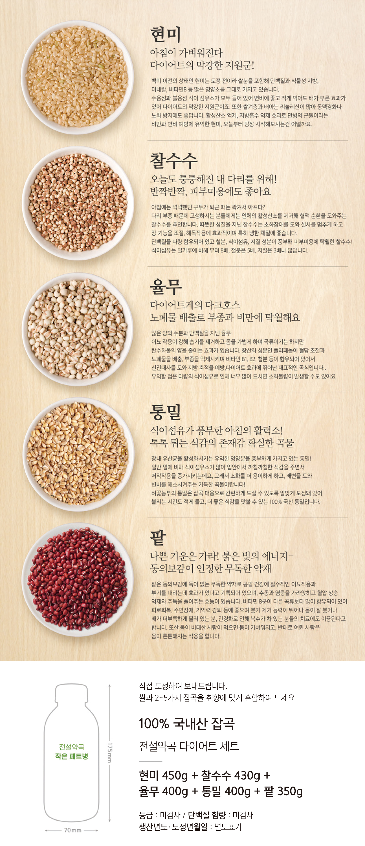 현미 / 찰수수 / 율무 / 통밀 / 팥