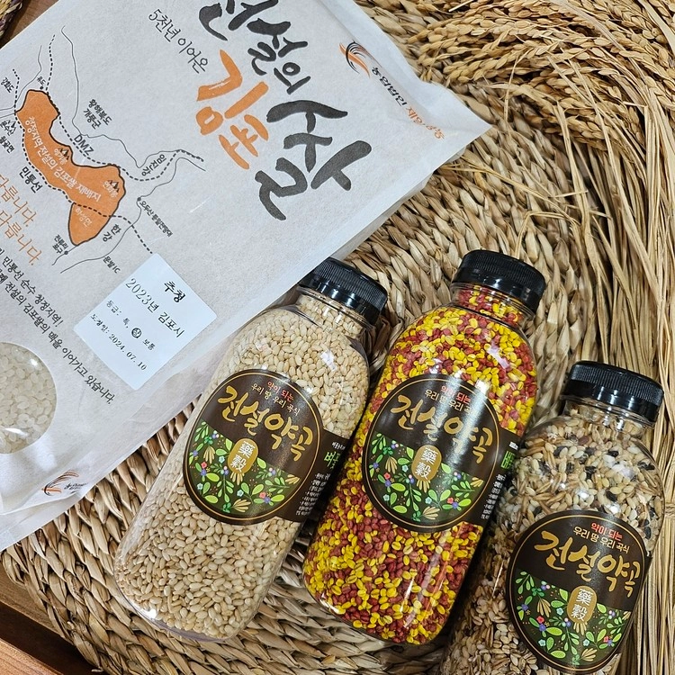 벼꽃농부가 직접 지은 햅쌀(2kg)과 전설약곡 3종으로 구성된  선물세트